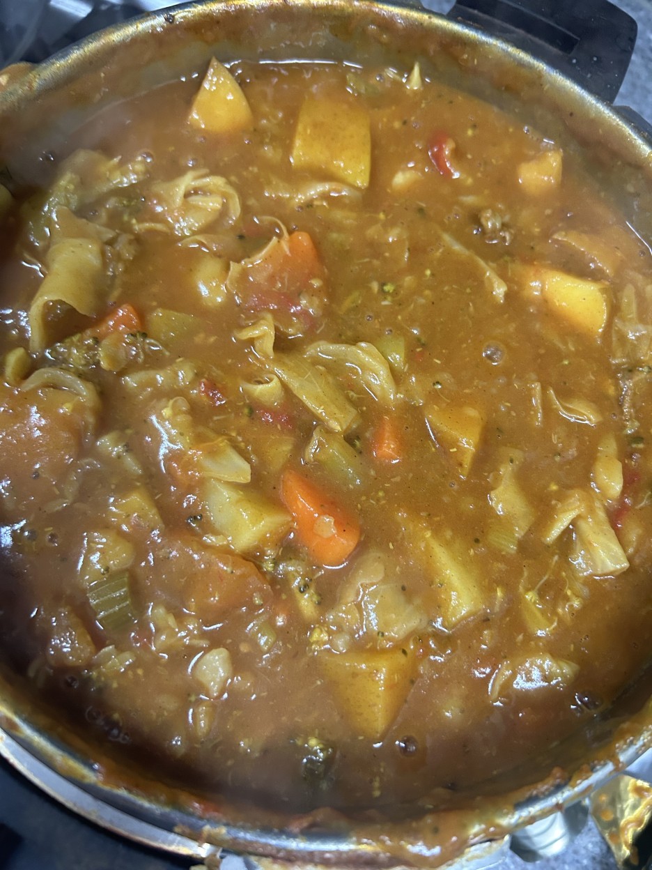 10. 1시간 정도 약불에서 끓여주었습니다. 씻고 나왔는데 바닥은 탔고, 카레가 되어버렸습니다.