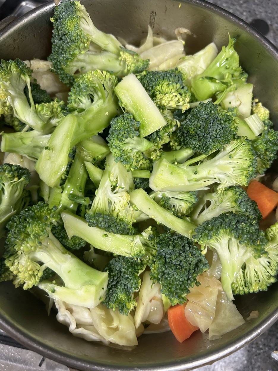5. 양배추 숨이 죽으면 브로콜리를 넣어줍니다.